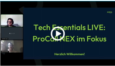 u.a. Buchung einer ProCall NEX Instanz, Konfiguration des ProCall UCServers (User, Gruppen, Umleitungen und mehr), Konfiguration des Web Admin der PBX, Einrichtung von STARFACE Connect oder anderen SIP-Trunks, Tipps und Tricks, Fragen
