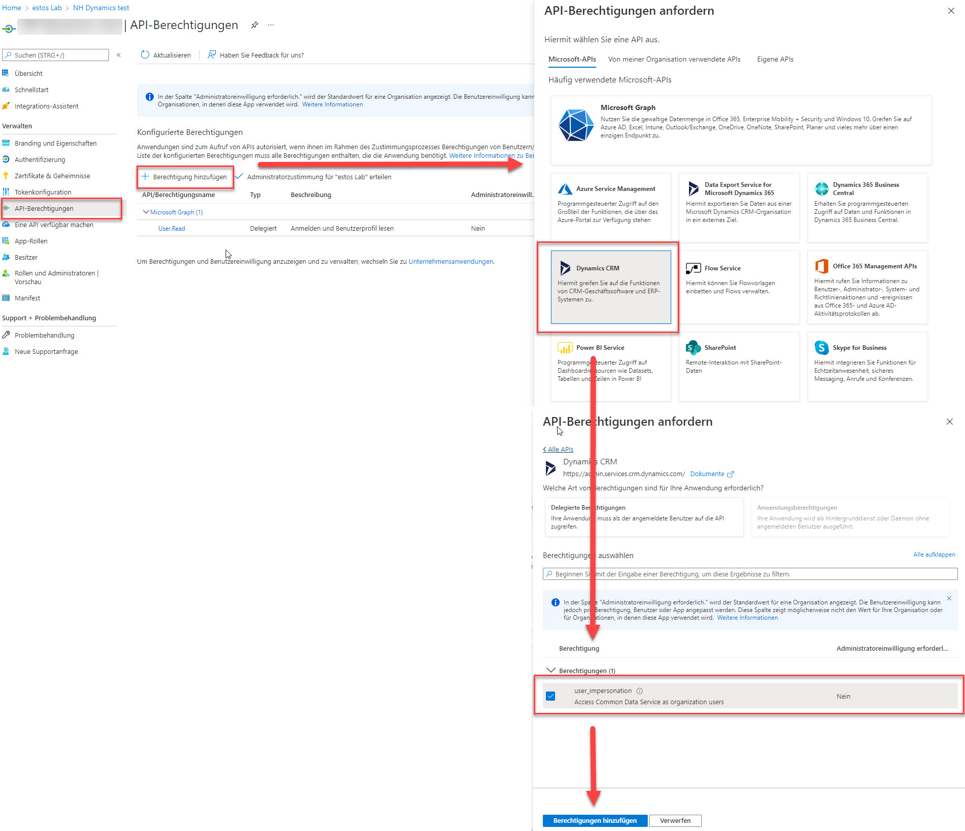 Beispiel Screenshot: API-Berechtigungen anfordern - Dynamics CRM