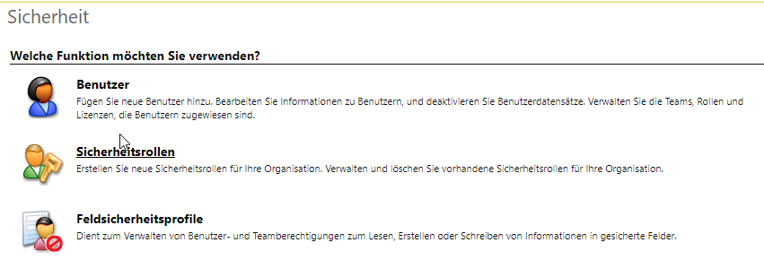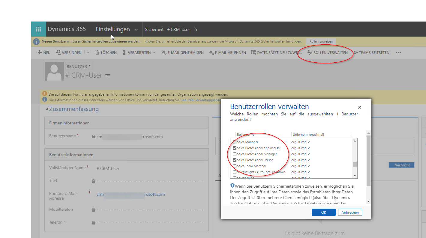 Beispiel Screenshot: Dynamics 365 - Einstellungen - Sicherheit