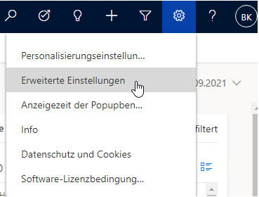 Beispiel Screenshot Microsoft Dynamics 365 - Einstellungen - Erweiterte Einstellungen