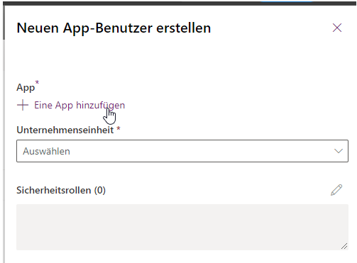 Beispiel Screenshot: App - Unternehmenseinheit und Sicherheitsrollen
