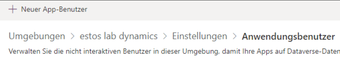 Der Application User muss über das PowerApps Adminportal im Power Platform Admin Center angelegt werden.