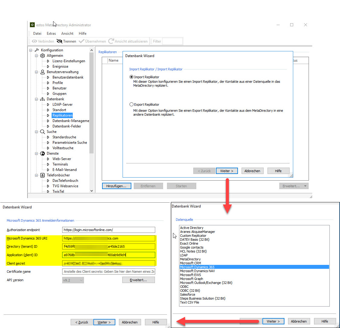Wählen Sie bei Hinzufügen - Import Replikator - Microsoft Dynamics 365 aus.