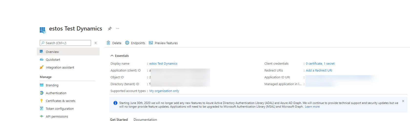 Einrichtung Verbindung Dynamics 365 online - App Registrierung