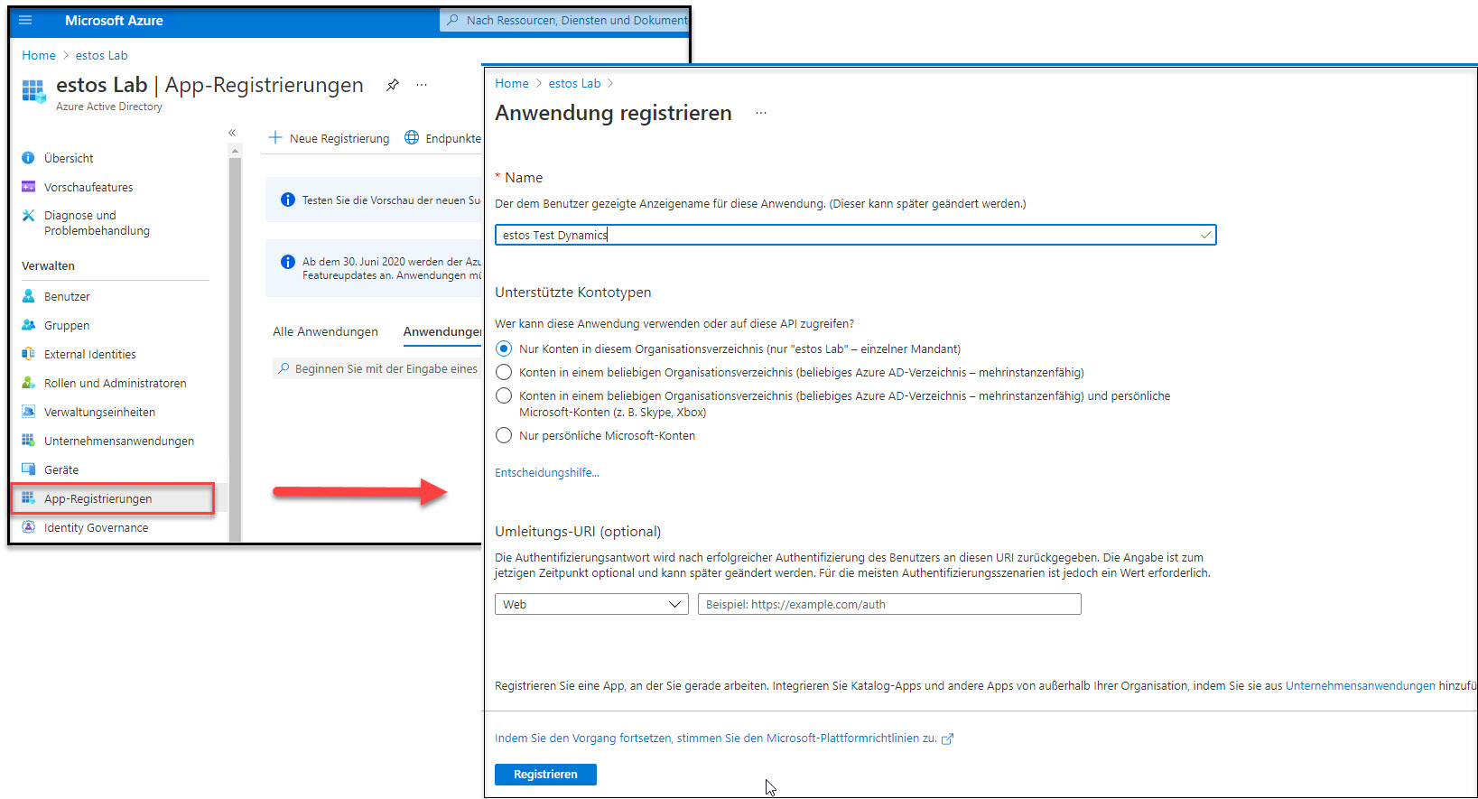 Dies erfordert einige vorbereitende Schritte innerhalb der Microsoft Verwaltungsportale.