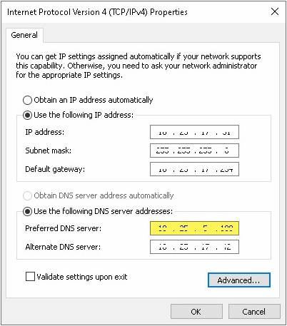 Möglichkeit 1: Angabe eines dedizierten Active Directory Servers