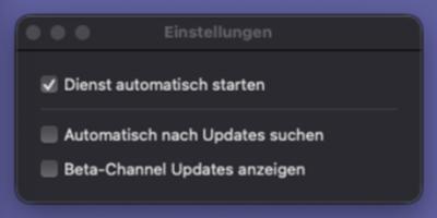 In den Einstellungen von ProCall Desktop for macOS steht die Option Dienst automatisch starten / Start service automatically zur Verfügung und ist aktiviert, wird aber nicht berücksichtigt