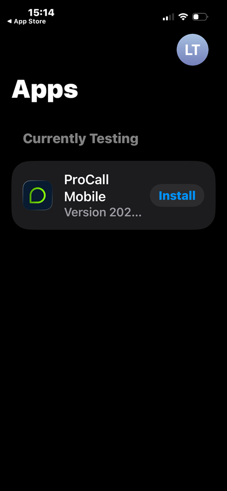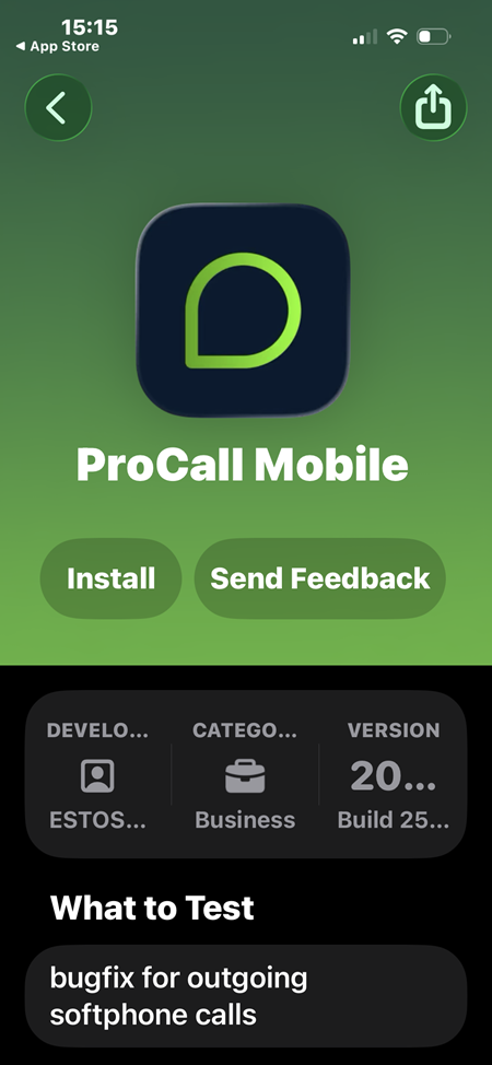 The TestFlight app can be used to download and install beta versions of estos ProCall Mobile for iOS.