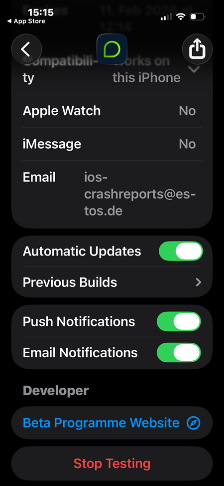Once TestFlight is installed on the test device, you can join the beta programme for estos ProCall Mobile for iOS.: Join the estos ProCall Mobile for iOS beta programme (German).
