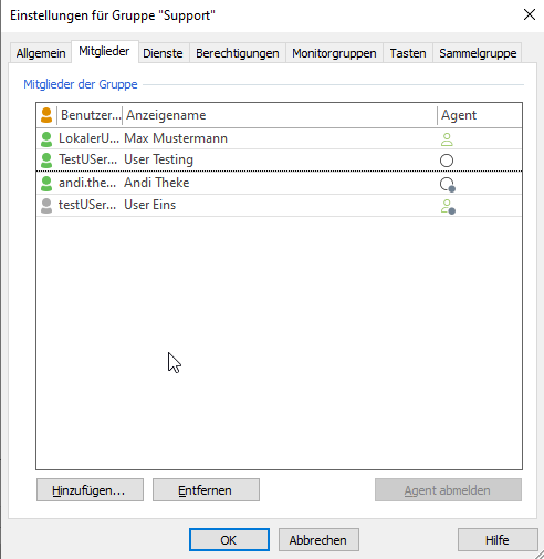 Die Sammelgruppen können jetzt als "Agentengruppe" genutzt werden. Mitglieder der Gruppe, die ein Softphone nutzen, können sich an der Gruppe an- und abmelden.