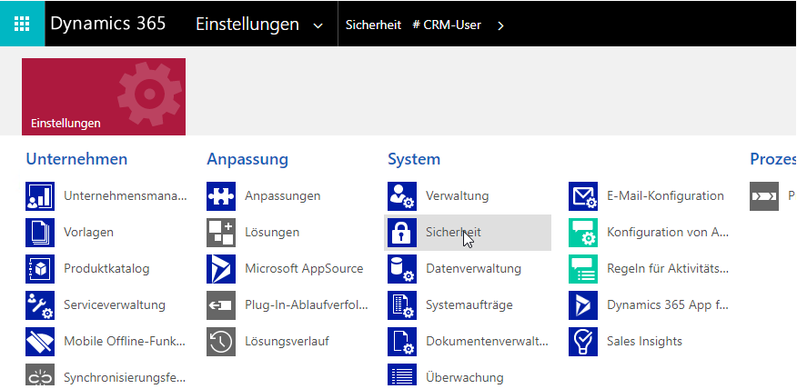 Example screenshot: Dynamics 365 - Settings - Security