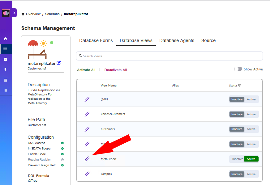 Example Screenshot Overview - Schemas - metareplikator - Database Views - Active