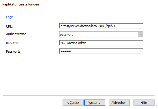 Replikator für HCL Domino - Beispielkonfiguration der REST API