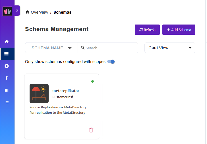 Beispiel Screenshot: Neuer Scope - Schema: metareplikator - Scope Name - Description - Add