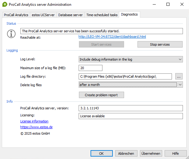 Therefore the log level should be reset by selecting "Log with extended debugging" as soon as you have generated the log files completely!