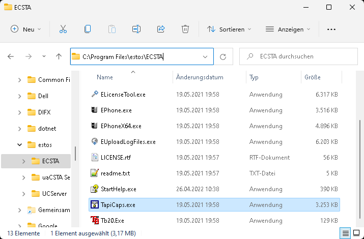 When using estos ECSTA, this file is located in the ECSTA program directory (in the installation standard the path C:\Program Files\estos\ECSTA):