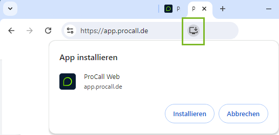 Alternatively, the ProCall App for Web can also be installed as an app on the computer.